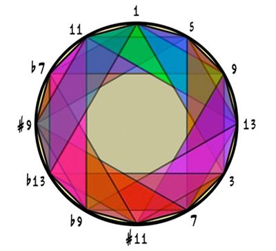 The magic of knowing harmonic functions. Bass-lines are created using the chord/chord-scales pairings