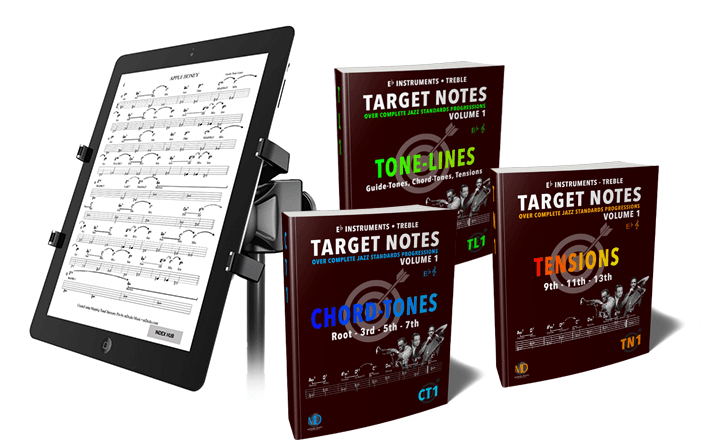 After releasing the Jazz Standard Progressions and the Upper Structures over Jazz Standards Progressions book collections we decided to embark in the creation of a method that will offer a systematic way of practicing target notes over chord changes from complete jazz standards progressions.